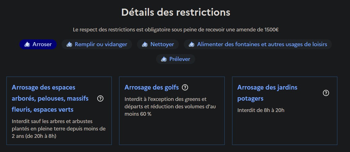 Pour plus d’informations, merci de consulter l’ arrêté de restriction et l’ arrêté cadre préfectoral.