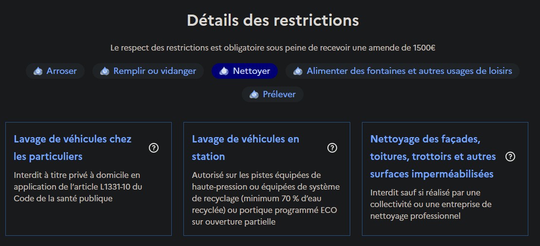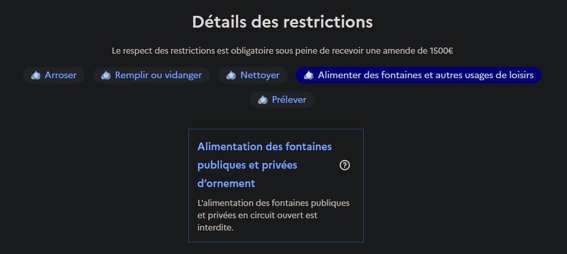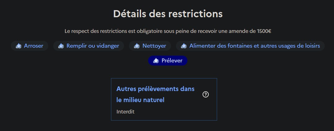 Cliquez ici pour consulter les restrictions sur le site Vigi Eau